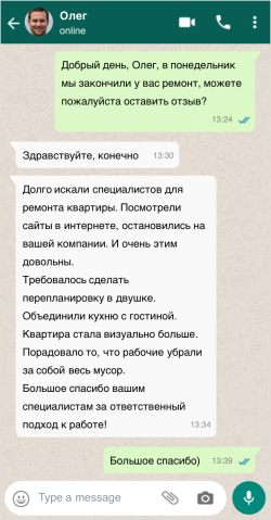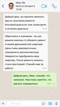 Клиент сможет оплатить ремонт наличным или безналичным расчётом. Вносить оплату нужно поэтапно. Количество этапов указано в документе. Сделать ремонт зала, кухни, спальни, ванной комнаты и туалета по приемлемой цене просто, достаточно обратиться в нашу компанию.
